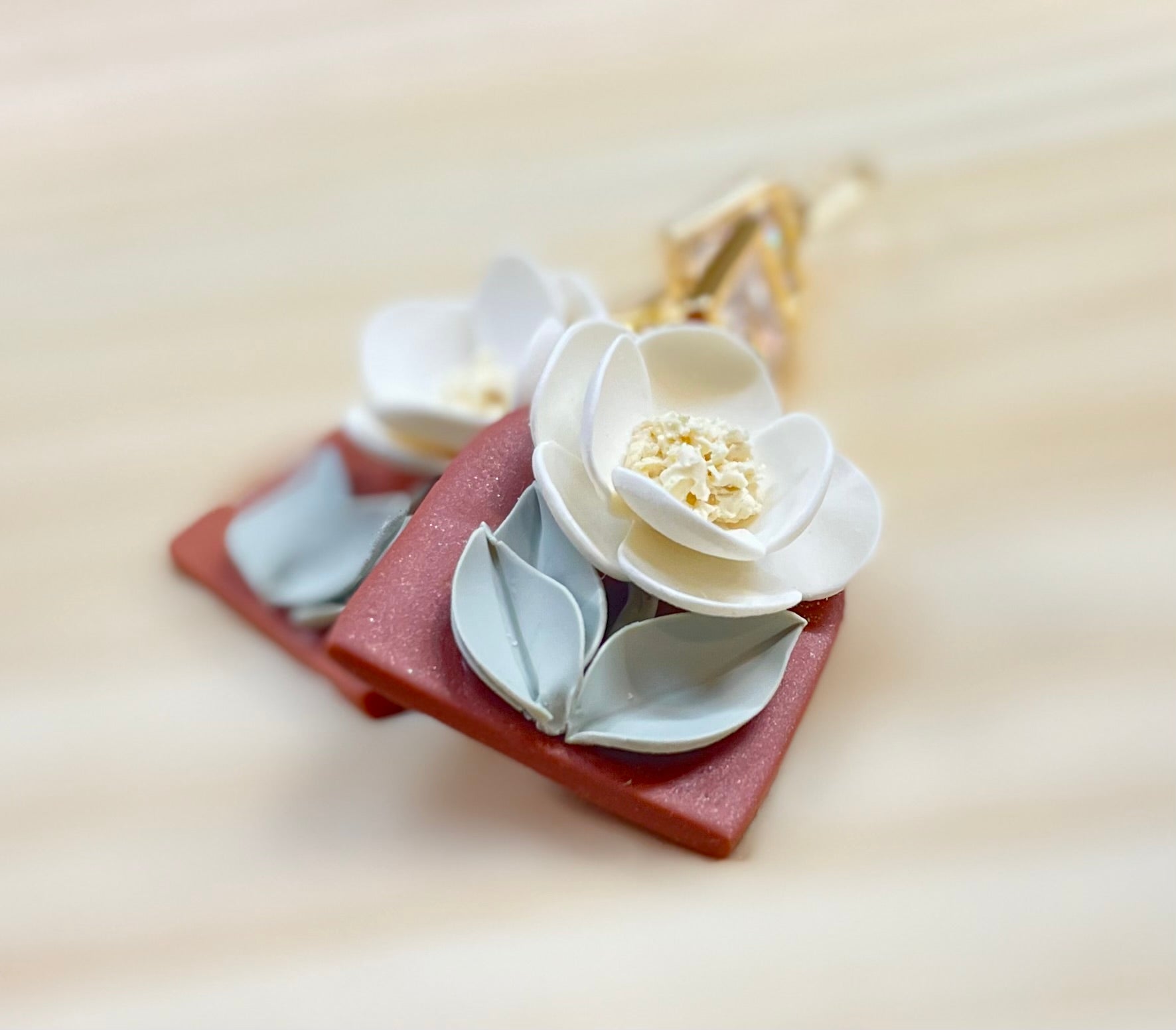 Delicate and timeless, our Magnolia Bloom earrings capture the beauty of nature with handcrafted magnolia flowers set against a rich terracotta backdrop. Accented with a shimmering crystal for a touch of elegance, these earrings blend earthy warmth with graceful sophistication. Lightweight and perfect for any occasion, they bring a soft romantic charm to your everyday style or special moments.